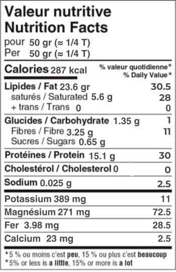 Très bonne source de fibres, de magnésium, de zinc, de vitamines B et E.
